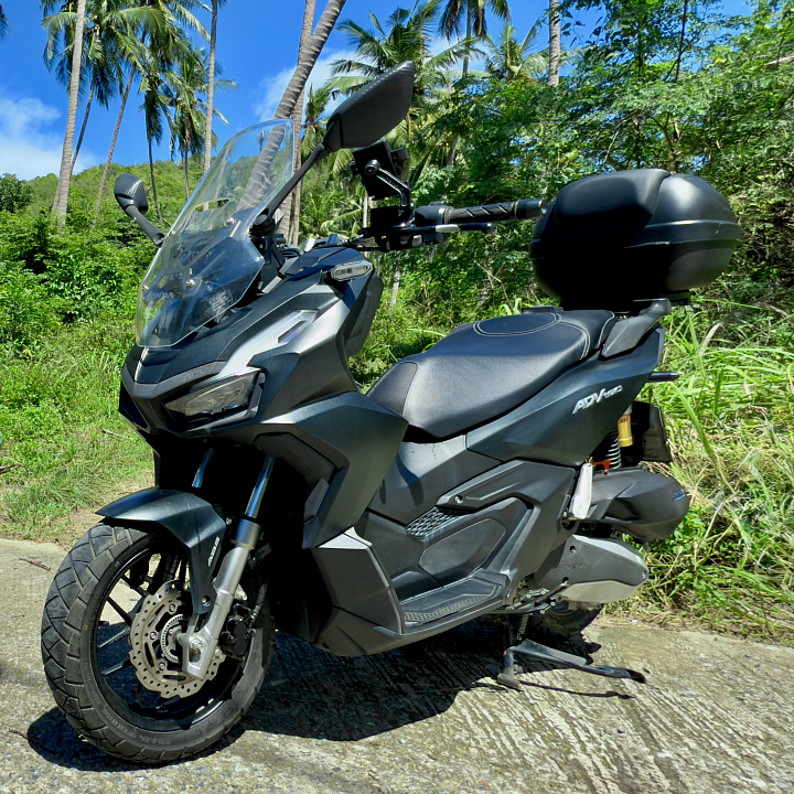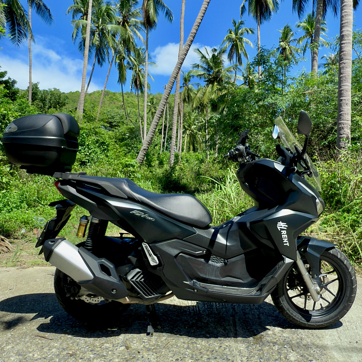 Rent Honda ADV 160 on Koh Samui. Looking for the perfect scooter for island roads? Honda ADV 160 rental on Samui is a top choice for travelers who value comfort, safety, and adventure style. This model combines city mobility and off-road spirit, making it ideal for exploring beaches, hills, and narrow tropical streets. Honda ADV 160 cc for rent on Koh Samui offers strong performance, smooth acceleration, and stable handling even on rougher island roads. With ergonomic seating, large wheels, and great suspension, you get a comfortable ride whether you’re cruising along Chaweng, climbing to viewpoints, or driving to waterfalls.